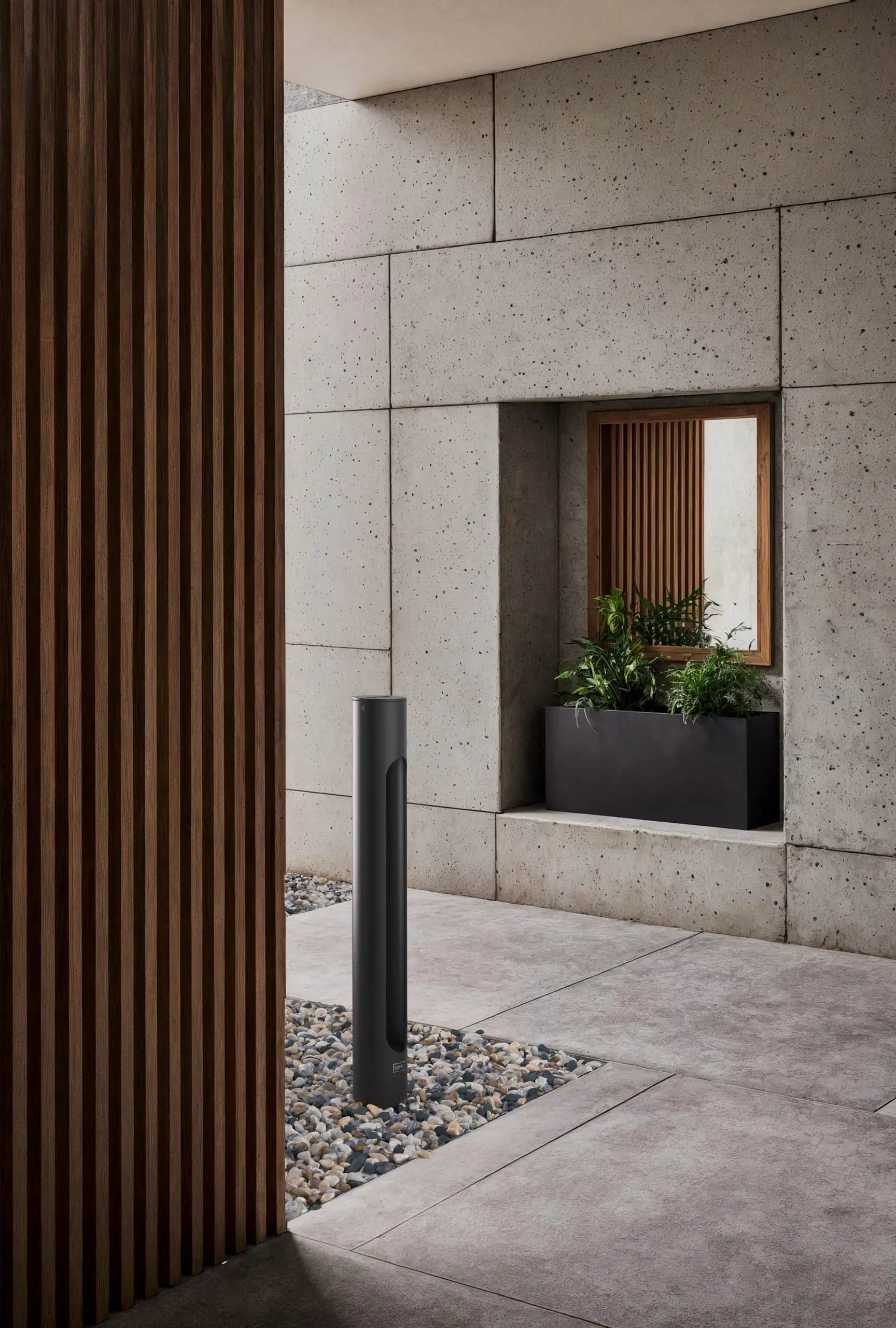 Architectural-grade bollard light for pathways and urban spaces. Aluminum construction with minimalist modern design.